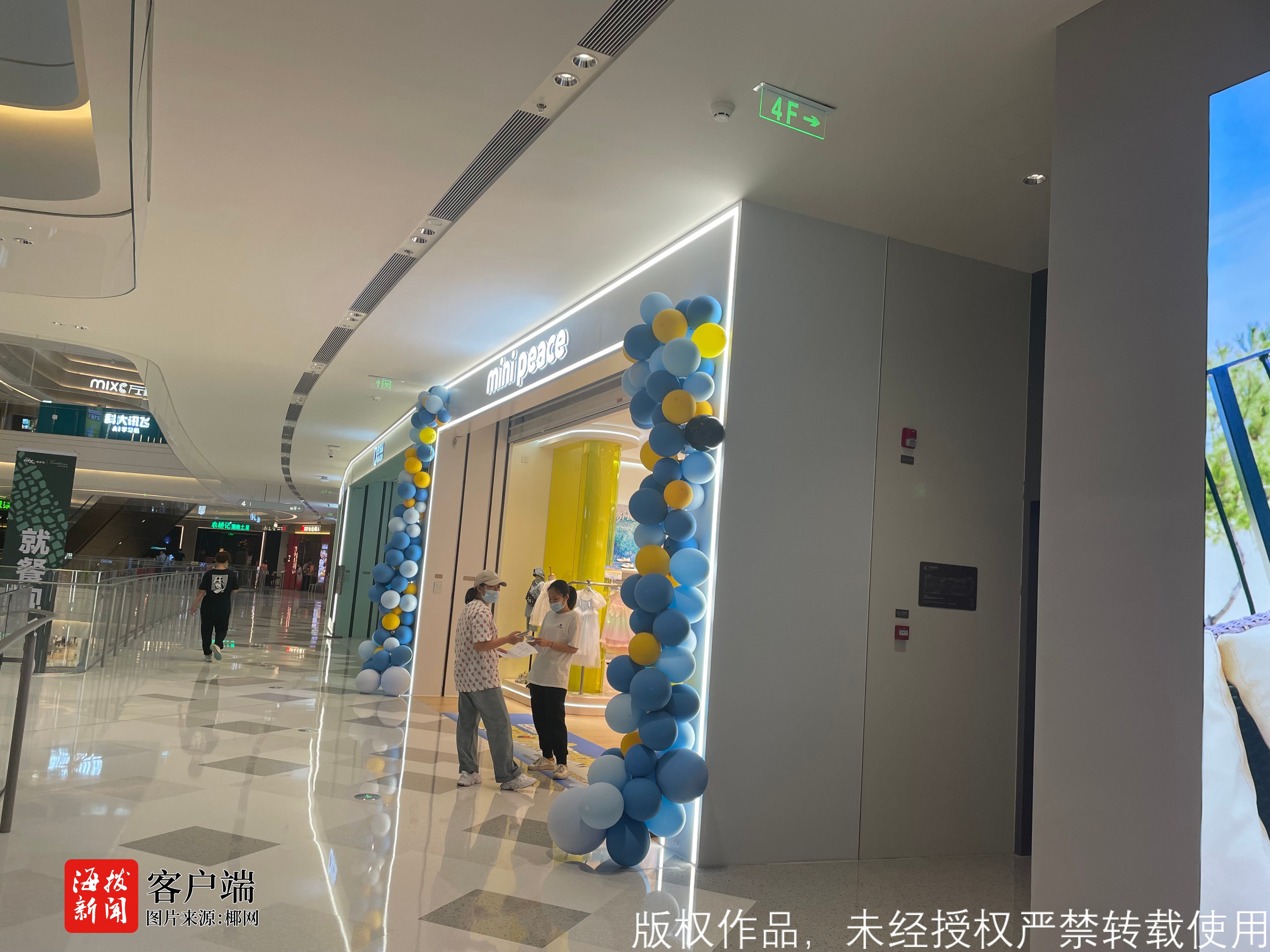 除了友谊阳光城外,不远处的N次方公园也为“六一”渲染了童趣氛围,在公园广场的LED大屏幕上播放着“六一”的各类童趣活动,与周边的旋转木马游乐设施相得益彰。同样作为商场的万象城在“六一”氛围上也有所准备,四楼的儿童用品售卖区中,部分门店也将彩色气球作为氛围点缀。其中一家名为MINIPEACE的童装门店的装潢最为吸睛,深蓝、浅蓝、鹅黄色的气球满满当当地挂在门口两侧,让过往的小朋友们不禁扭头多看两眼。