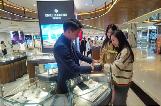 顾客在GDF免税城瑞士高端腕表品牌选购