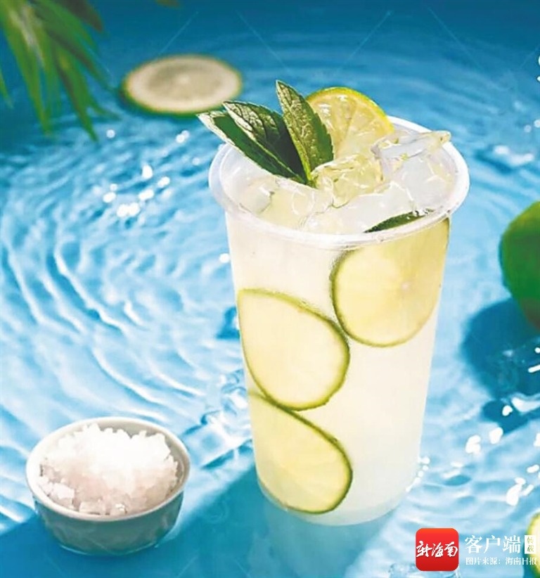 海南本土茶饮品牌老盐季的老盐鲜果茶既是消热利器,也是健康之选。热带鲜果的清甜与古法老盐的咸鲜碰撞出奇妙口感,其中老盐能补充人体因出汗流失的钠、钾等电解质,避免夏季脱水;黄皮、青柠等鲜果则富含维生素C,助力增强抵抗力。来自辽宁的游客朱先生第一次品尝便被圈粉,直言“不仅好喝,还特别解渴,比碳酸饮料健康多了”。