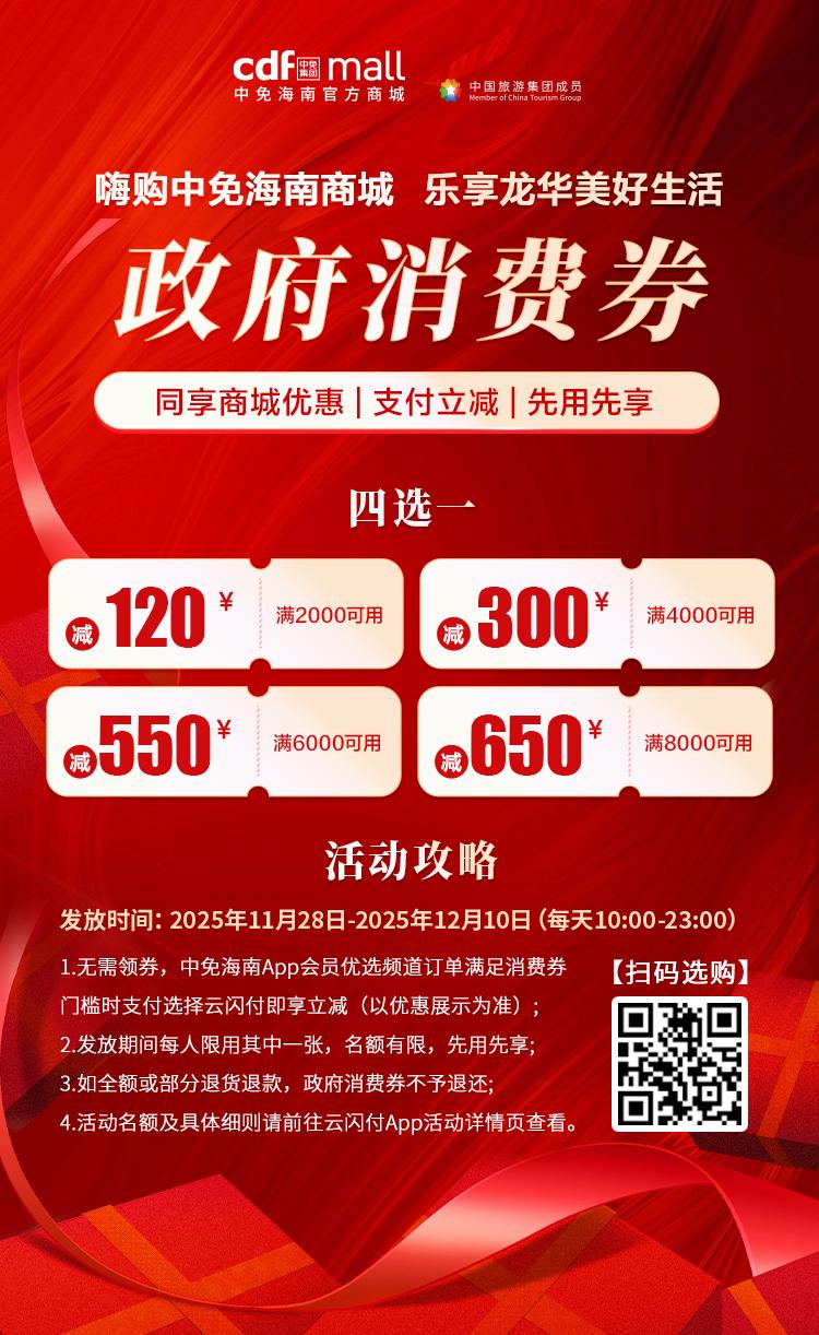 此次cdf中免海南官方商城年终盛典,深度融合了海南封关的政策热点与年末传统消费旺季,加之政府消费券的直接助力,形成了“平台优惠+品牌加码+政府补贴”的三重利好,旨在为消费者带来实实在在的福利。