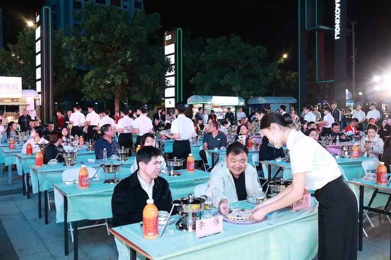 开席仪式上,糟粕醋、鸡、海鲜、海南粉依次上桌,市民游客在热气氤氲中沉浸体验“吃醋追潮流、吃鸡追传统、吃鲜追特色”的饮食文化内涵。糟粕醋生产企业、以及餐饮企业各显本领,纷纷拿出自家酿造的醋,精心准备的海鲜,凭借各自不同的口感和特色,为现场每一位食客品奉上了一席“糟粕醋”与“新鲜味”的舌尖“对决”出圈宴。醋理大师、潭牛文昌鸡等品牌依次推介,分享品牌与美食的故事,向大众展示海南自贸港建设背景下,兼具文化底蕴与产业活力的琼味美食名片。