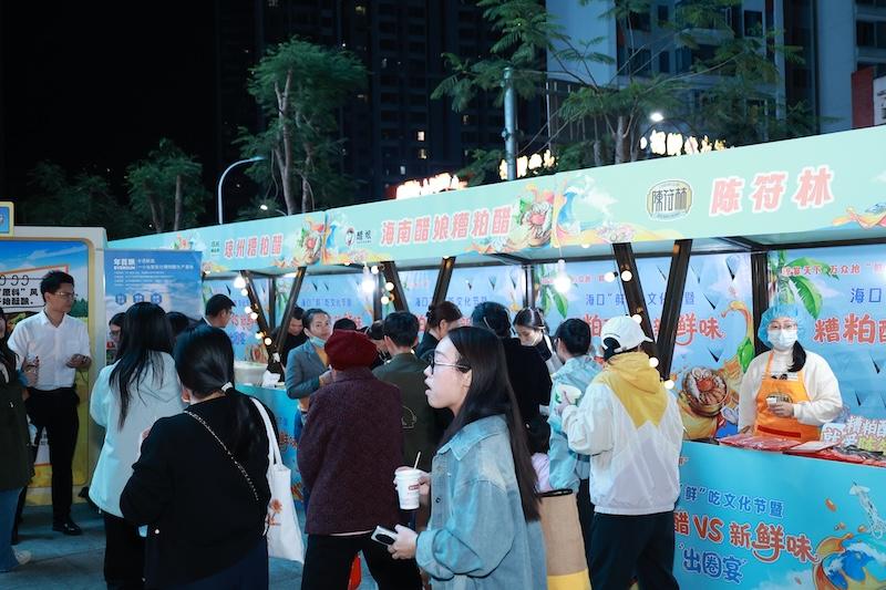 活动现场特别设置海口经济圈“鲜”吃美食展,广邀海岛永芳糟粕醋、铺前三婆糟粕醋、陈符林糟粕醋、海尔冰箱冷柜、海南省水稻协会等10余家海澄文定屯海口经济圈城市的糟粕醋产业链企业现场展销,“糟粕醋关东煮、槽粕醋烤鱼、槽粕醋小吃碗、糟粕醋小火锅”,以“糟粕醋”为口味底料开发出的特色餐食,吸引了不少市民游客驻足品尝,全方位构建的一条龙尝“鲜”场景,深度感受糟粕醋“鲜”魅力。