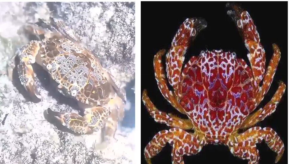 铜铸熟若蟹体色斑驳,表面分区清楚,各区有明显的隆块,显得高低不平,但左右对称而光滑,额部表面有4块并立的隆起,有3条纵沟相隔。多生活在热带浅海的珊瑚礁上,在我省周边海域较为常见。含有神经性毒素,不可食用。