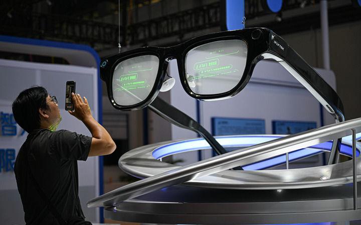 4月10日在第六届消博会主会场拍摄的AI眼镜模型。新华社记者蒲晓旭摄