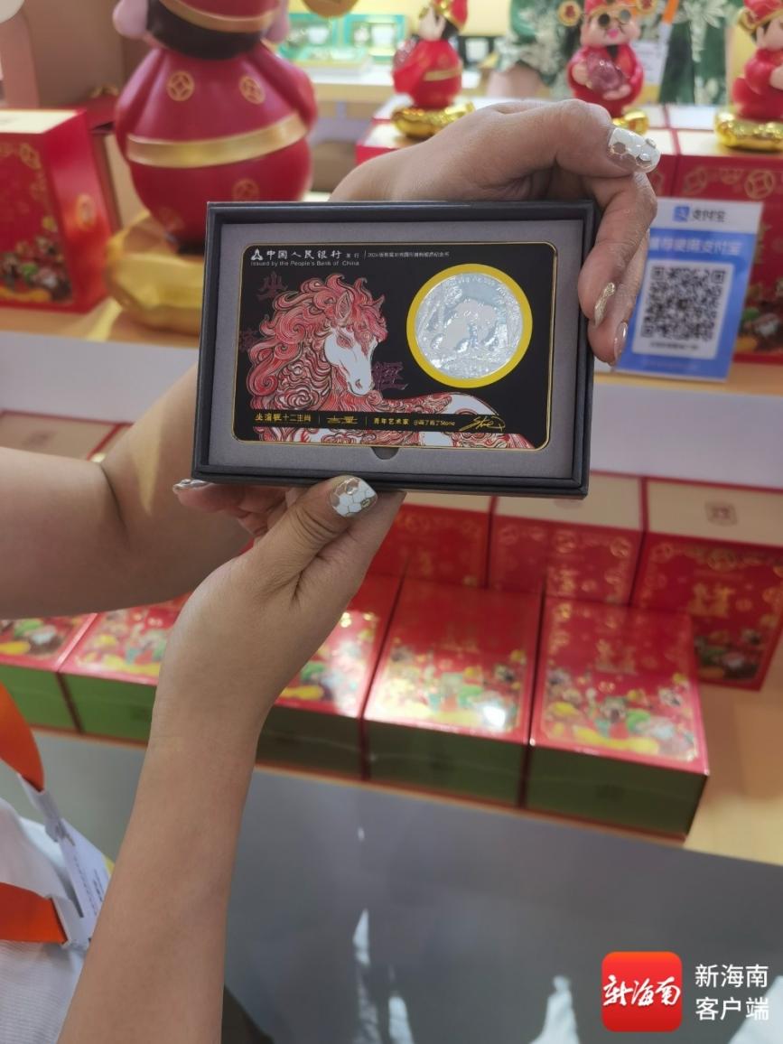 “龙银币今年三月在柏林首发,海外认可度非常高。发行价1300元左右,现在市场已经炒到3000元以上。昨天在消博会首发的纪念币,今天也一直有人咨询。”现场工作人员介绍说