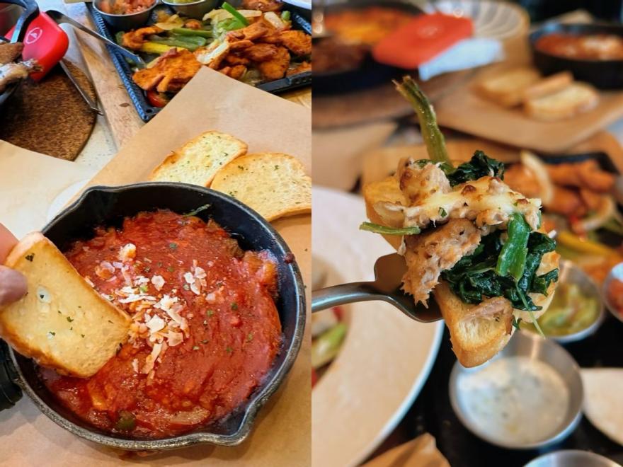 西冷牛排摩洛哥式蛋,是必胜客菜单上最有“早午餐气质”的一道。以新鲜番茄与浓郁酱底慢焗,打入可生食鸡蛋焖至半熟流心,再铺上炙烤大块调理西冷牛排,点缀芝士碎和欧芹末,尽享摩洛哥之味,搭配酥脆恰巴塔面包食用,一口下去如同沐浴在地中海暖阳下。