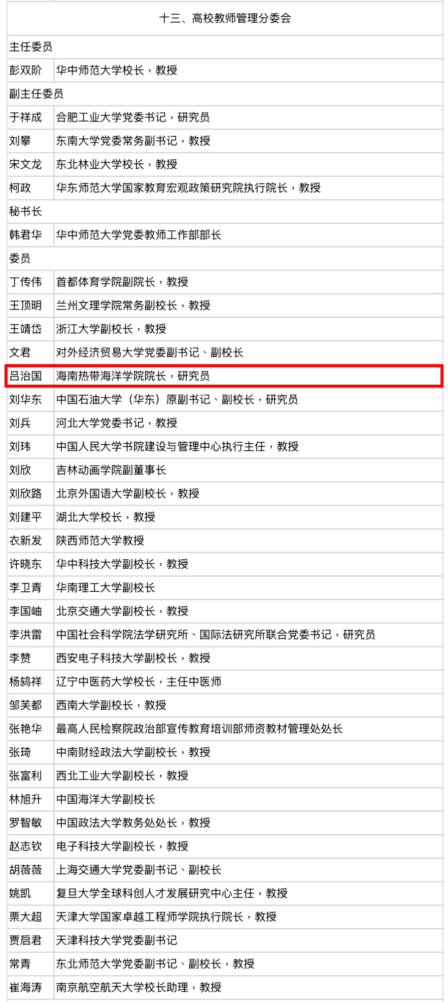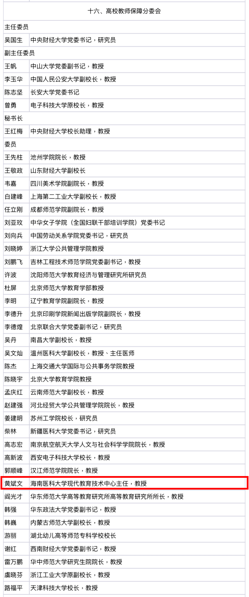 海南10人入选教育部教师队伍建设专家指导委员会成员名单。