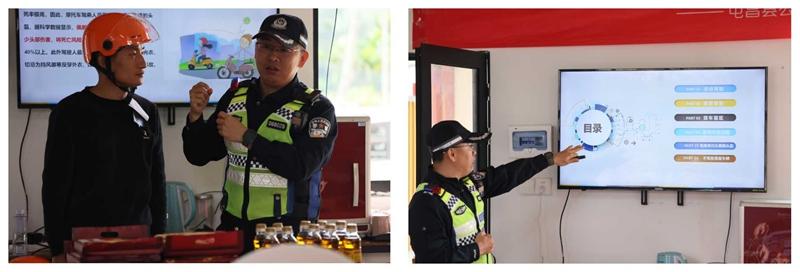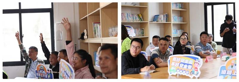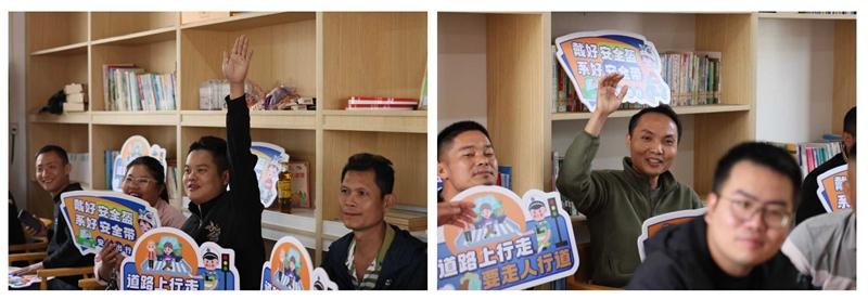 情景问答:主持人抛出问题:“骑电动车要戴头盔吗?”村民们纷纷举手,一位群众抢答:“要!”并补充道:“我家孩子每次出门我都盯着他戴。”
