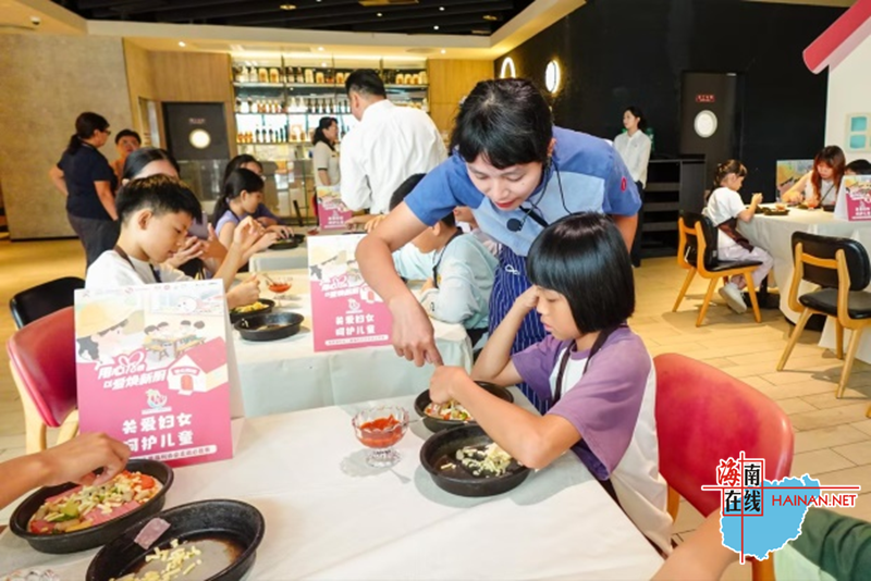 10月12日,海口必胜客日月广场店迎来了一批特殊的“小厨师”,一场名为“捐一元·村校厨房焕新”的主题公益活动,在海南省妇女儿童福利协会“爱心妈妈”们的陪伴下温暖启程。小朋友们在家长和工作人员的帮助下戴上萌萌的小厨帽、系上小围裙,开启了难忘的“捐一元”探索之旅。