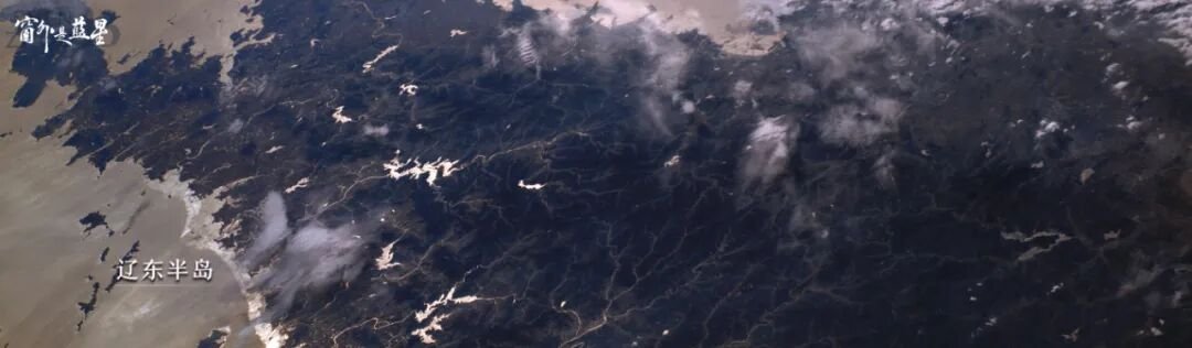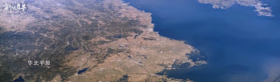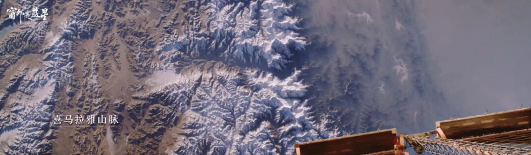 不同于在飞机上看地球的视角,影片中有一段从太空视角展示地球风物的画面——华北平原、辽东半岛、青藏高原、青海湖、塔克拉玛干沙漠、喜马拉雅山脉,令人看后不禁感叹静谧太空的浩瀚与人类的渺小。