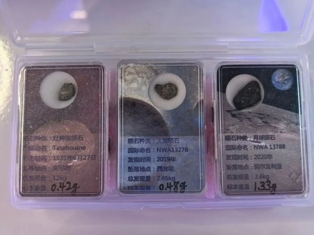 馆内有一处人气爆棚的“陨石盲盒区”,盲盒里装的不只是月球陨石碎片,更是一次浪漫的“月亮邂逅”。