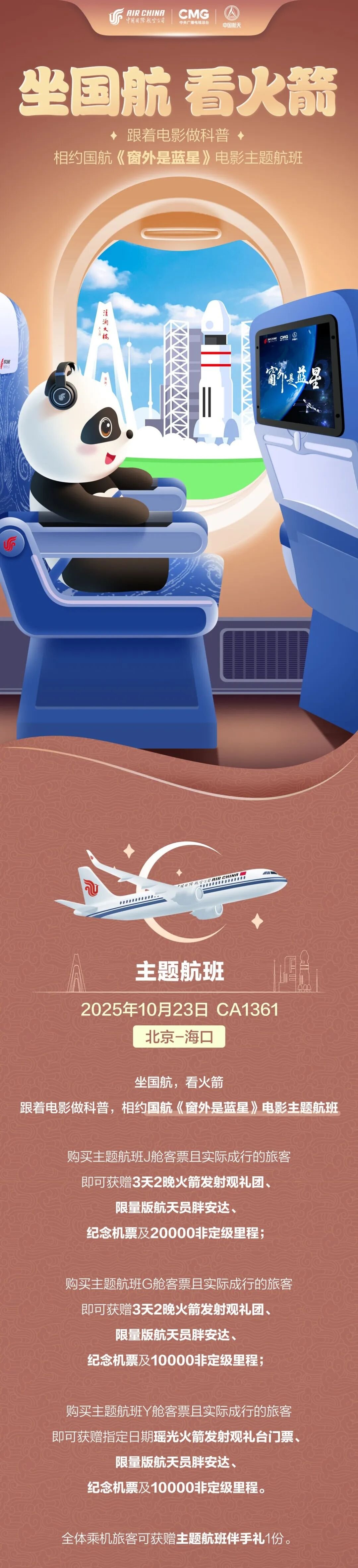 所有搭乘本次航班的旅客均可获赠主题航班伴手礼1份,把浩瀚宇宙“打包”带回家,让这份实体纪念,成为你航天梦想的永恒见证。