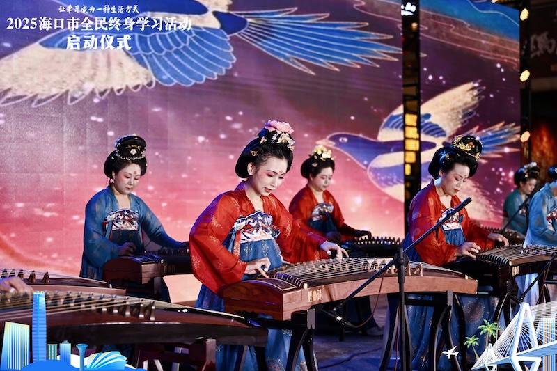 在“百姓学习之星”访谈环节,多位来自不同行业的市民分享了他们的学习历程,激励更多人投身终身学习。随后,《我的中国心》《时代在召唤》等节目轮番上演,南海职业学校学生的独舞表演赢得满堂喝彩。最后,秀英区社区教育学院的古筝演奏《盛世国乐》为展演画上圆满句号。