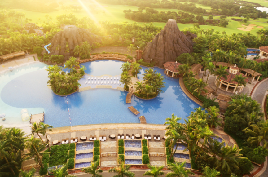 海口的火山温泉富含氟、硅、锶等多种对人体有益的微量元素,在观澜湖旅游度假区,56个风格各异的温泉池,就是你的私享疗愈空间。