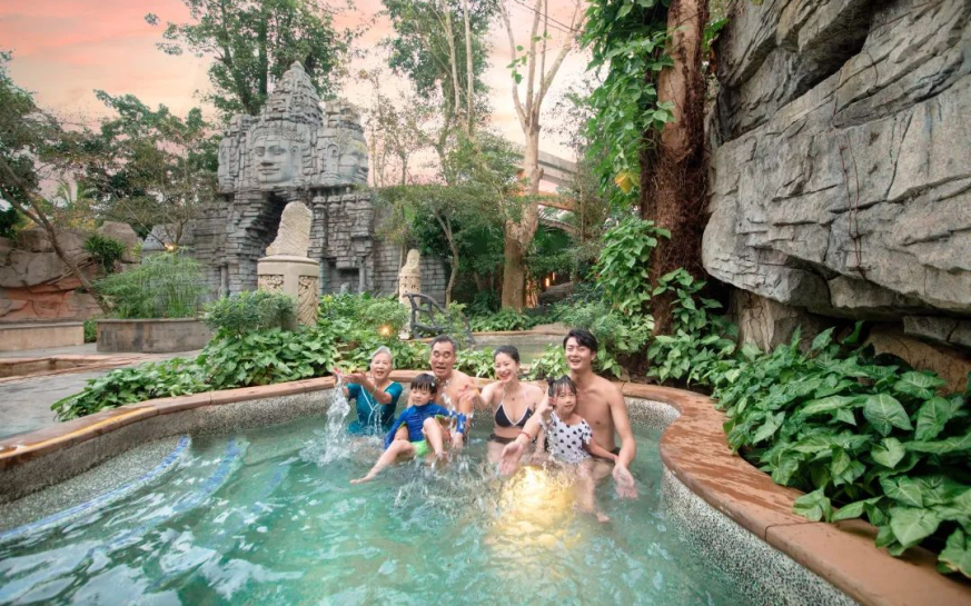 你可以选择一个自己喜欢的汤池,将身体完全浸入温暖的泉水中。氤氲的热气升腾,紧绷的神经逐渐舒缓,压力与疲惫仿佛都被温润的泉水悄然带走,只剩下无比的放松与宁静。