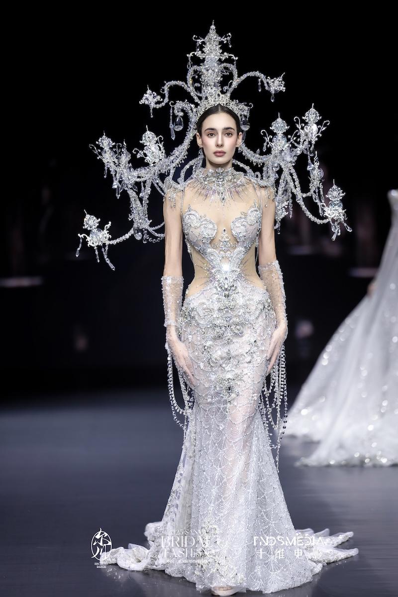 品牌阵容的质效双升成为核心竞争力。活动汇聚60个国际国内一线婚纱礼服及配饰品牌,展览面积突破1万平方米,较上届扩容50%,构建起全品类展示矩阵。国际端,法国高定品牌GEORGESHOBEIKA、意大利PeterLangner等首次进驻,带来全球前沿设计理念;国内端,数十家国牌领军企业亮相“国牌聚鹿城”展区,尽显原创实力与文化底蕴。三亚市商务局局长表示,婚庆旅游是三亚幸福产业核心支柱,本届婚纱周是整合全球婚庆资源、推动文旅消费升级的重要载体,未来将持续优化产业生态。截至开幕前,活动已吸引东南亚、日韩等10余个国家的上万名专业买手注册,国际商贸影响力显著提升。