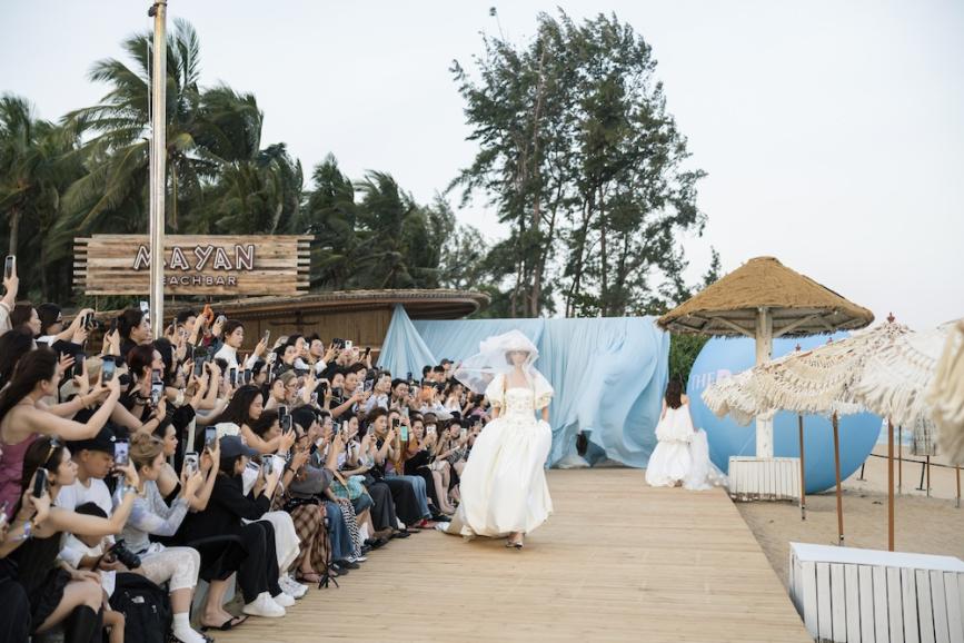 海岛场景实现现象级传播。22场高定大秀在沙滩、草坪等三大主题场地举办,蜈支洲岛“海上飞艇时尚时刻”话题阅读量超2亿;“倚梦千年”预热展吸引超2万名市民游客打卡,实现从专业展会到城市文化事件的破圈。
