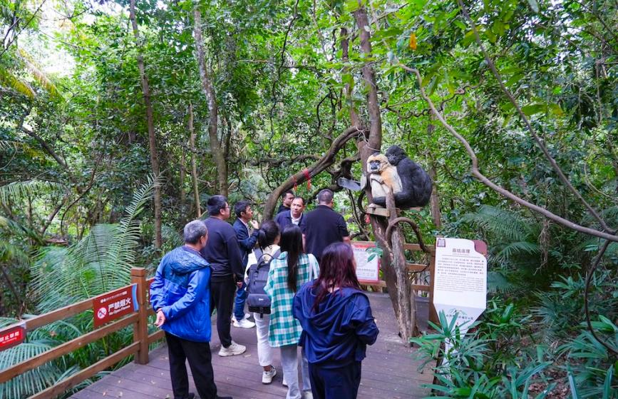 海南热带雨林国家公园霸王岭片区野生动植物资源丰富,被人们称为“绿色宝库”“物种基因库”。区内分布有陆生脊椎野生动物416种,国家一级保护动物10种,包括海南长臂猿、坡鹿、圆鼻巨蜥等。