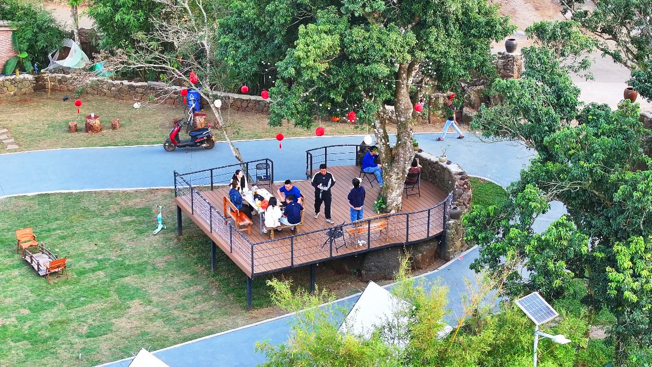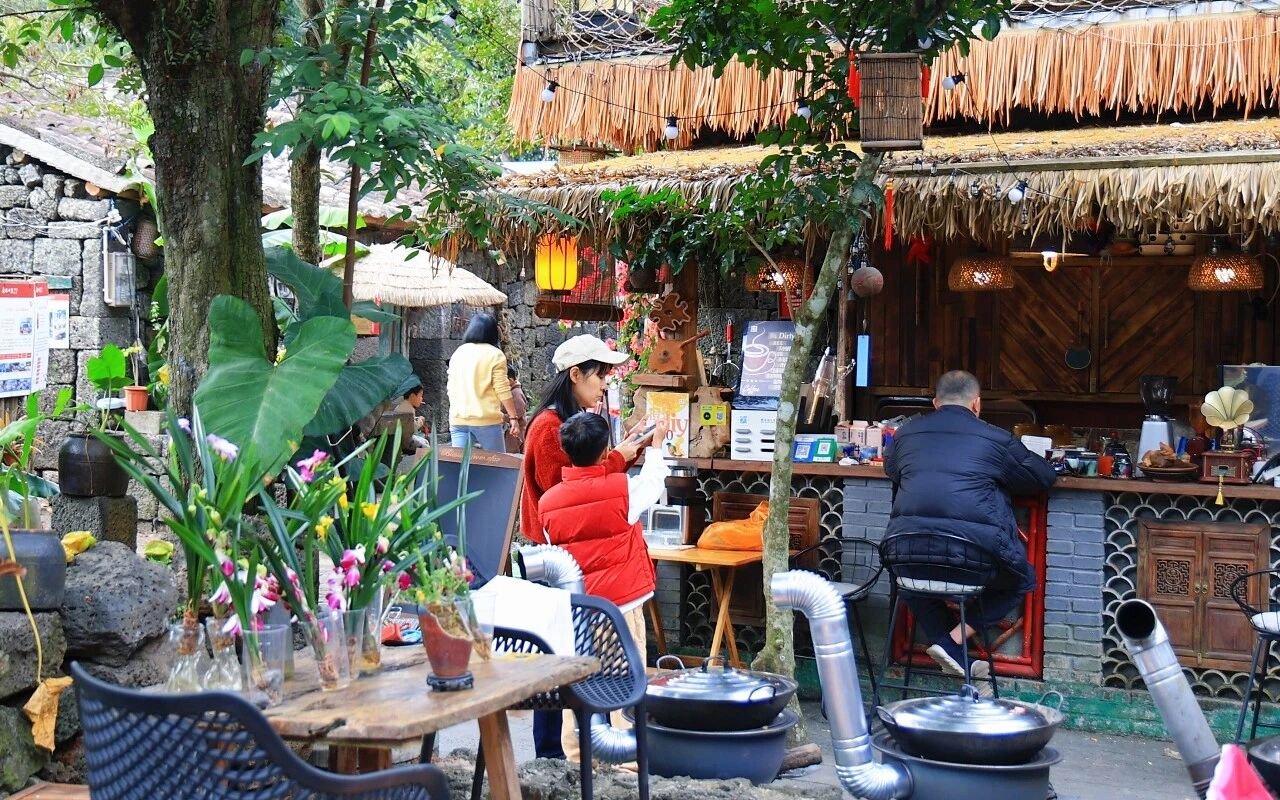 近郊生态游持续走热,乡村休闲正成为假日生活的新风尚。在火山口片区,山脚下的度咖啡座无虚席,人们在此品尝地道咖啡,享受静谧时光。三卿村也迎来了人潮,青辰•乡嘢咖啡内举办的非遗剪纸活动吸引众多亲子家庭动手体验;春风十里非遗小院推出的小碗蒸菜早早售罄;阿鲁那疗愈小院内坐满寻求身心放松的游客。扎岛sunrise餐厅凭借迷人风光和特色的石斛养生餐,吸引不少市民游客专程到访,在美食与美景中度过假期。而官良共享农庄的石磨豆腐也广受游客好评。