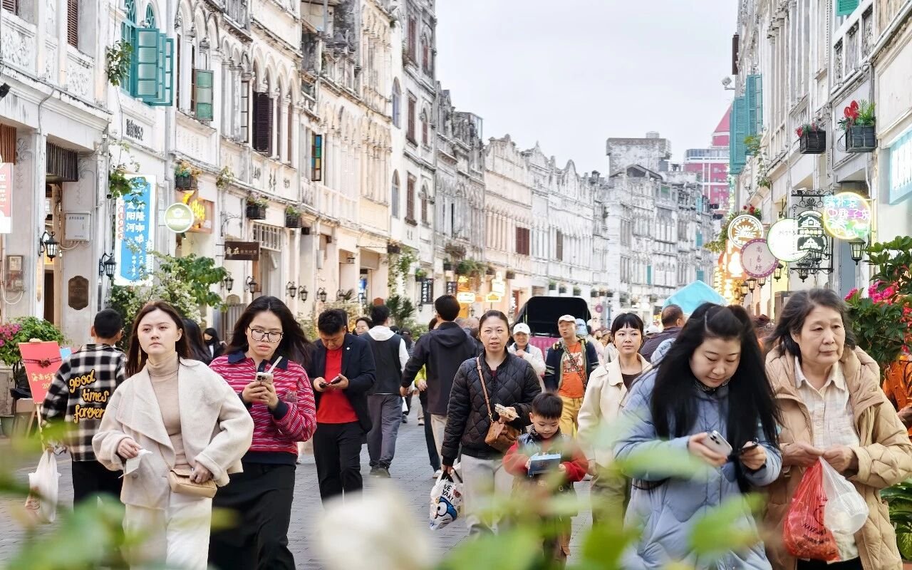 骑楼老街同样在元旦当日创下历史性客流高峰,达11.76万人次,同比增长86.61%。游客在此悠然漫步,品尝老爸茶、清补凉等特色美食,购买特色文创,拍照留念,感受着百年老街在节日里焕发的勃勃生机。
