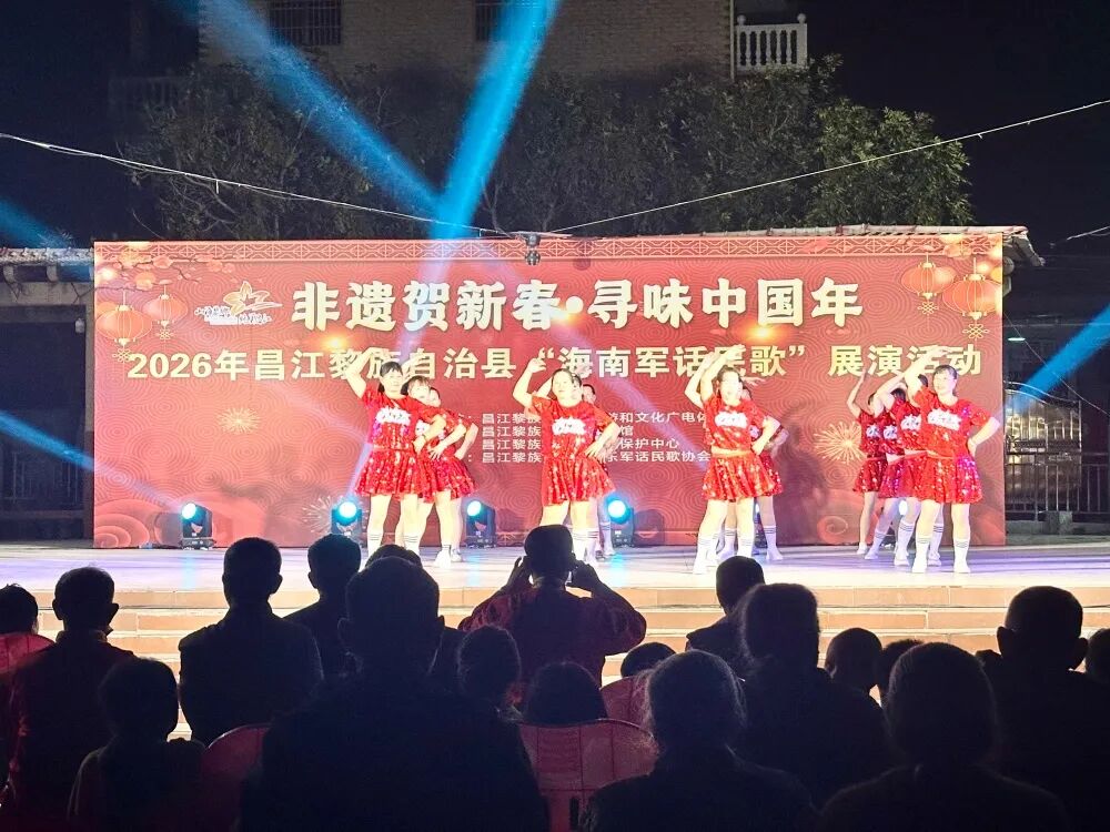 1月27日晚,“非遗贺新春·寻味中国年”2026年昌江“海南军话民歌”展演活动在海尾镇沙地村文化广场开演,以文艺惠民的形式筑牢乡村文化阵地,让非遗保护的丰硕成果惠及千家万户。