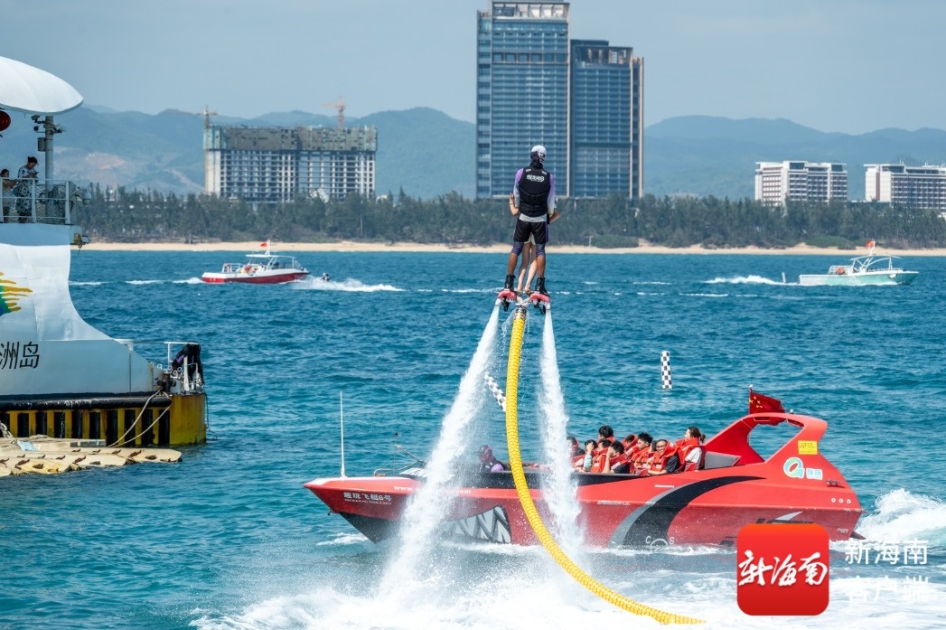 游客在三亚蜈支洲岛旅游区体验海上项目。受访者供图