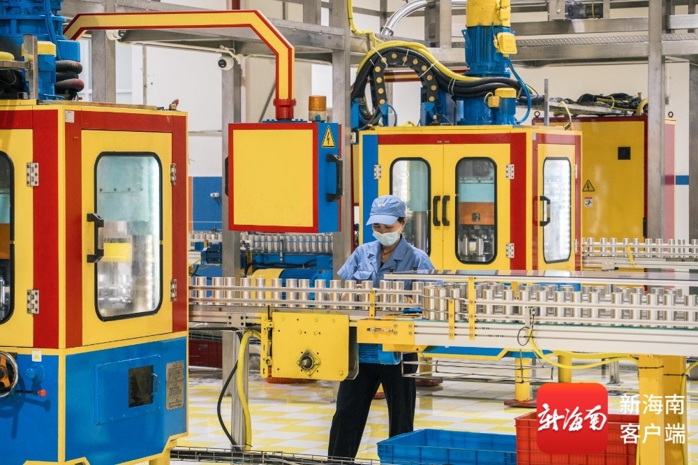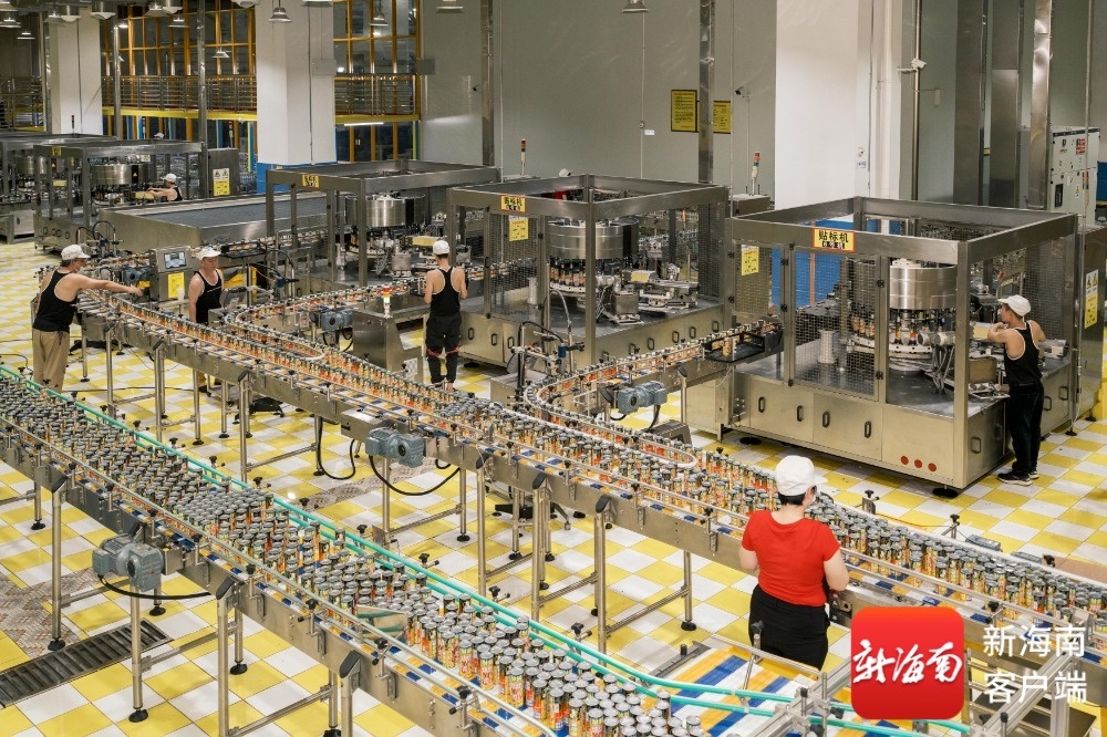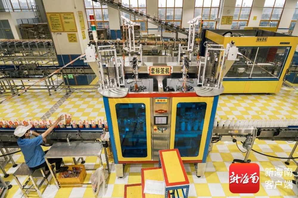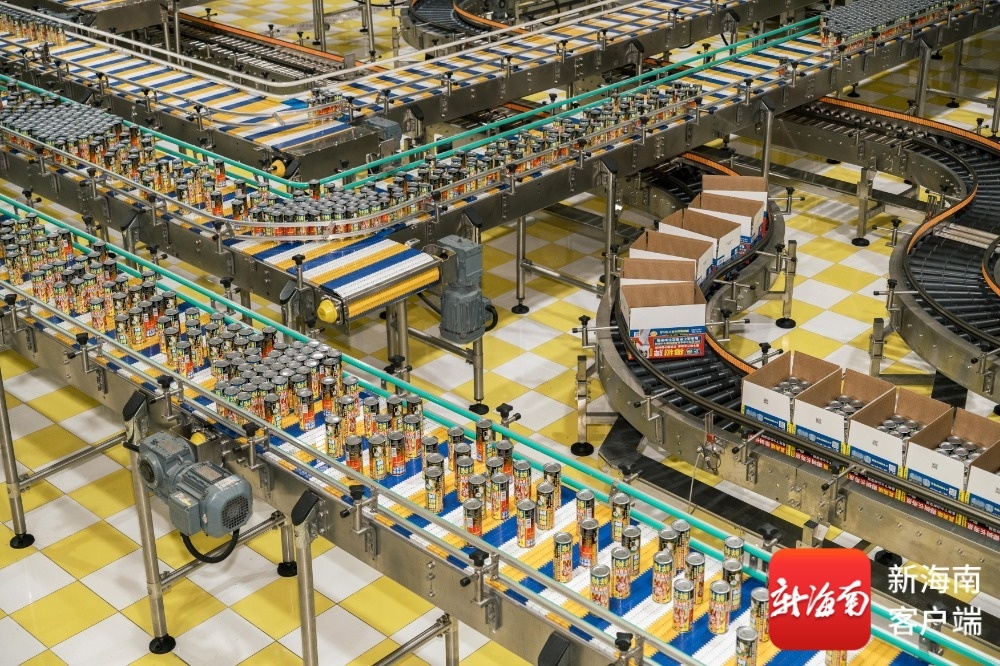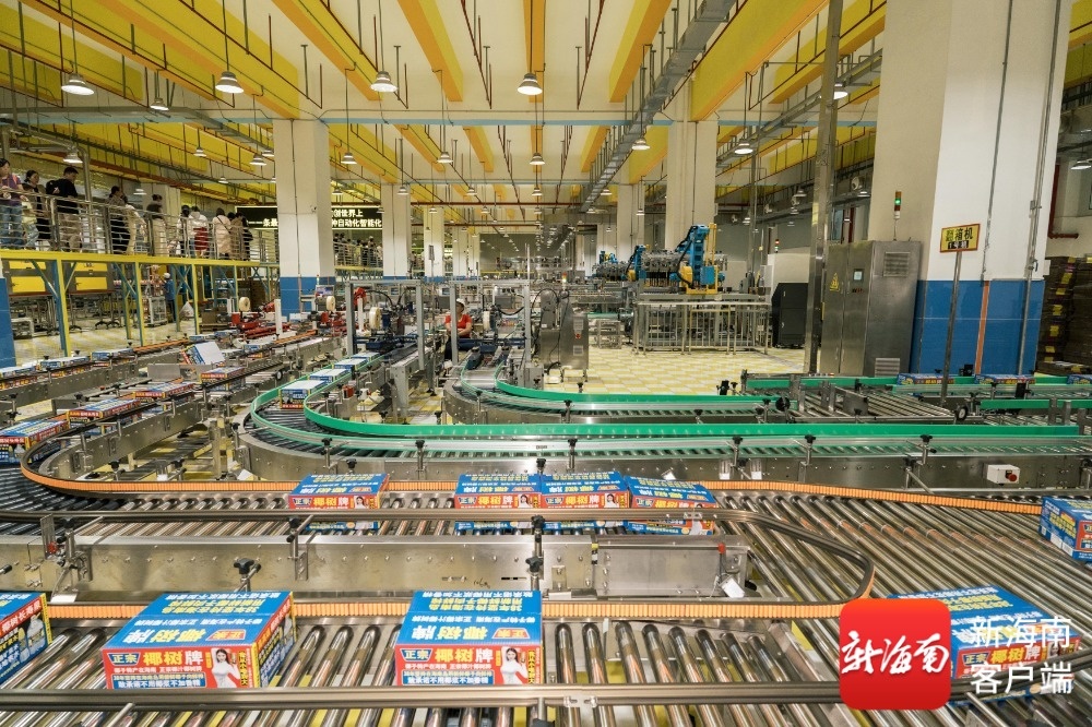 椰树工厂内的全自动智能生产线。记者曹志摄