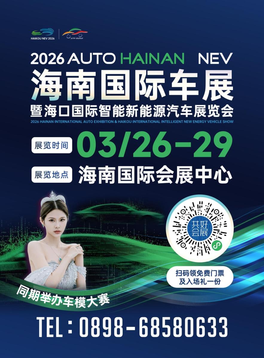 3月26-29日,2026海南国际车展由中国贸促会汽车行业分会和海南共好国际会展集团股份有限公司在海南国际会展中心、厂家+组委会双重补贴、全流程专业服务,打造集看车、选车、购车、体联合主办!立足海南自贸港,以6万㎡超大展出规模、百大品牌齐聚验于一体的一站式汽车消费平台,为车企与消费者搭建高效对接桥梁。