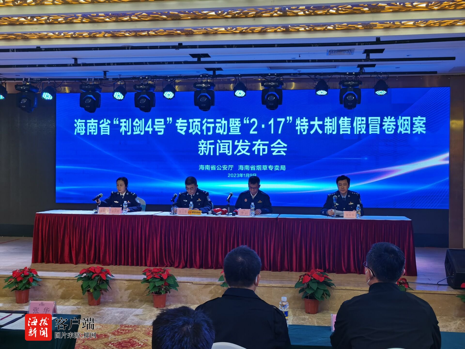 1月9日下午,海南省公安厅联合海南省烟草专卖局在琼海召开“2·17”特大制售假冒卷烟案新闻发布会,通报海南警方破获近年以来案值最大、规模最大的特大制售假冒卷烟案。