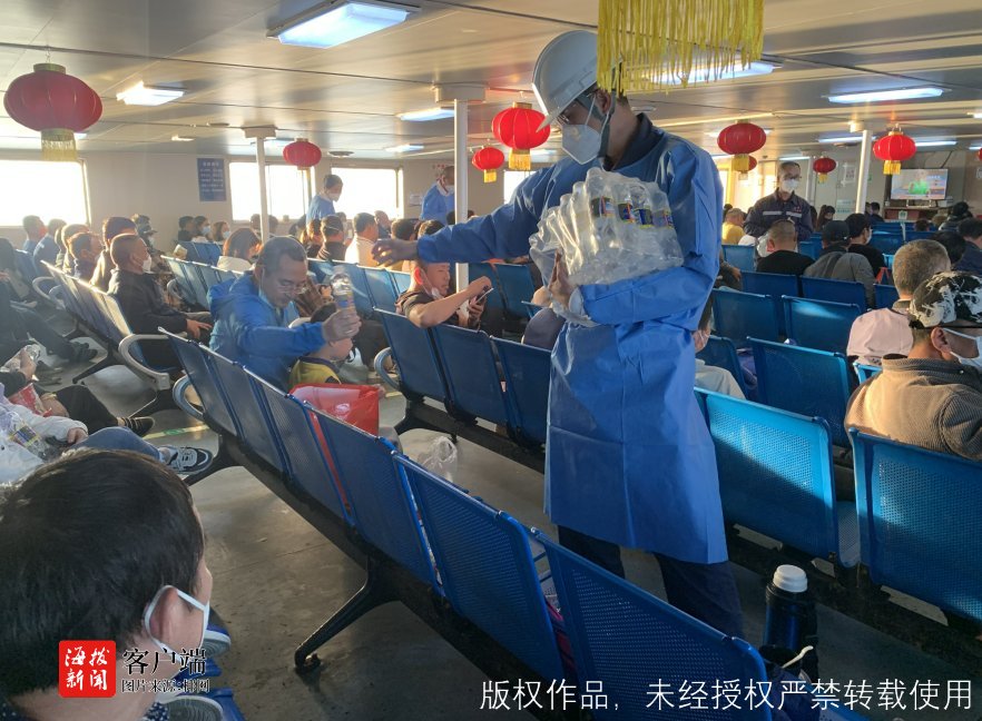 在客舱里,各船舶启动应急预案,组织客运部人员到客舱,耐心为旅客讲解停航原因、开航要求,提醒他们注意防寒保暖,注意佩戴好口罩,并免费派发面食4000余桶,矿泉水3000余瓶,让旅客切身感受到航运资源一体化后的新海峡、新服务。个别船舶根据实际,凌晨抽派船员熬煮暖心粥,将温暖和关怀送到每一位过海司机、旅客手中。 1月14日是今年春运第七天,预计1月14日至20日将出现节前进出岛车客流最高峰。据统计,1月7日至1月13日,进出岛航次1314次,进出岛车121890辆次,其中进出岛小车90024辆次,进出岛旅客411317人次,形成节前车客流小高峰。 琼州海峡(海南)轮渡运输有限公司有关负责人表示,将充分发挥琼州海峡两岸一体化协同优势,科学精准做好春运统筹工作,优化船舶运力配置,全力做好琼州海峡水上运输安全生产保障工作,为广大旅客提供安全、快捷、暖心、高效的全新过海服务体验。