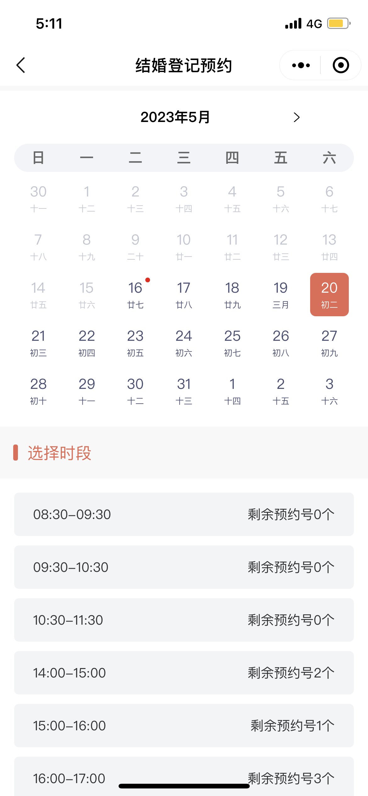 据三亚民政公众号消息,5月20日三亚市婚姻登记机关业务办理时间调整为:上午8:30-12:00,下午15:00至现场全部业务办理完毕。当天将全部实行微信公众号预约办理,市民们可通过“三亚市民政局婚姻登记处”微信公众号成功预约的当事人,根据预约顺序,由婚姻登记机关根据业务办理量排班排表,并提前电话通知当事人业务办理时间段,当事人到现场后领取预约顺序号办理业务。