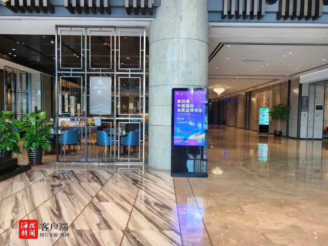 海口美兰国际机场酒店作为本届消博会的机场门户酒店,在酒店内大堂、前台、公共区域等二十余个点位投放了消博会主画面,为贵宾们营造了浓厚的消博会氛围。