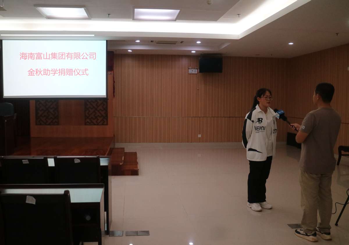 接受捐赠的学生代表激动的说:“感谢海南富山集团有限公司的关心和帮助,我们将珍惜这次机会,努力学习,以优异的成绩回报社会,将爱心传递下去。”
