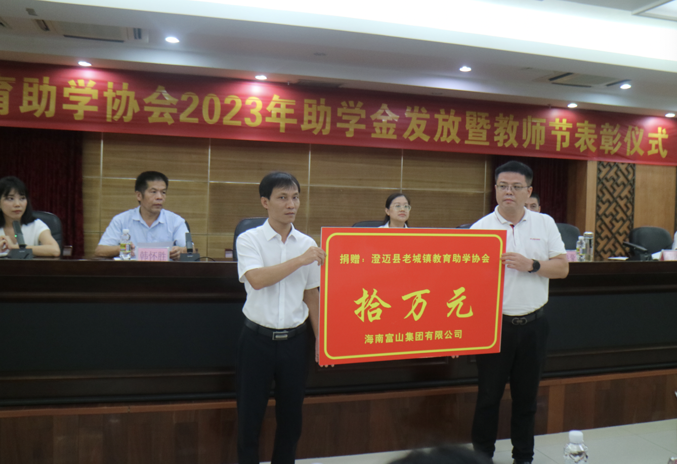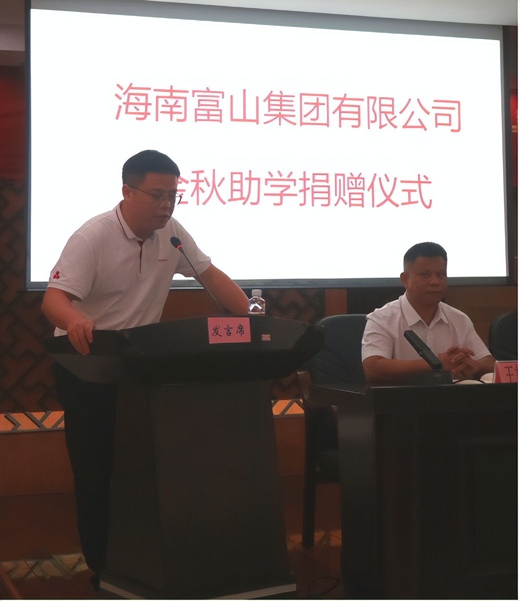 为帮助贫困家庭优秀学子顺利完成学业,2023年9月8日下午,“海南富山集团有限公司金秋助学一一走进澄迈"捐赠仪式在海南老城科技新城二楼多功能会议厅举行。富山集团此次向老城镇贫困优秀学子捐赠10万元助学金,资助50名学子。这是富山集团今年继在东方市、五指山市之后,开展的第三场捐资助学公益活动。