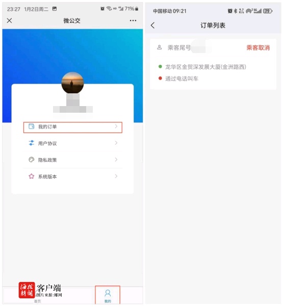 7.我的订单,显示乘客所下订单,可显示订单详情;