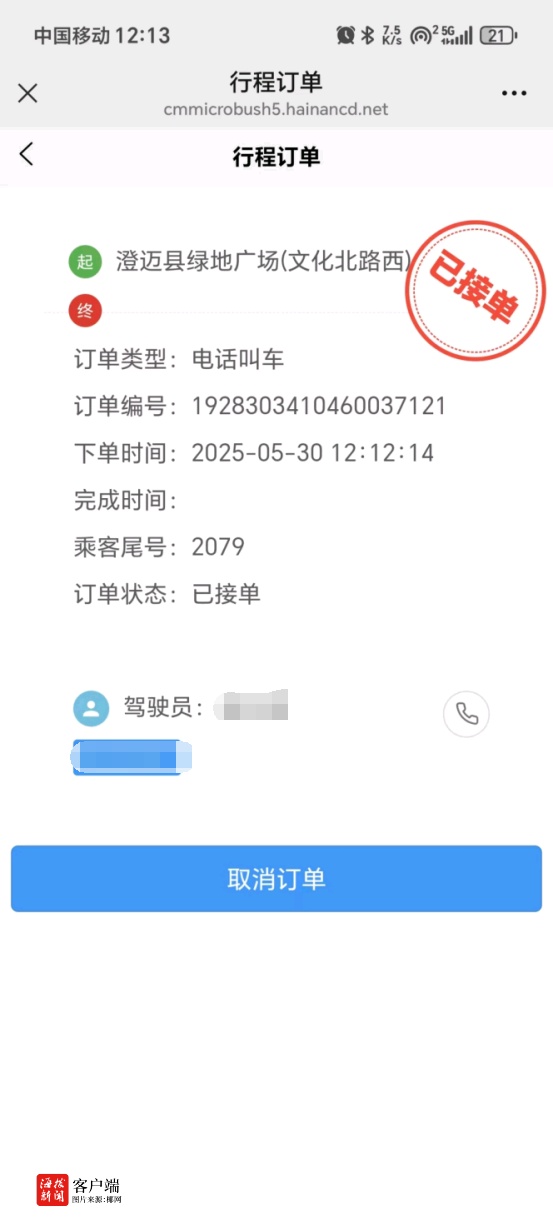 5.点击“司机电话”,可拨打电话给司机,完成线下电话叫车功能;