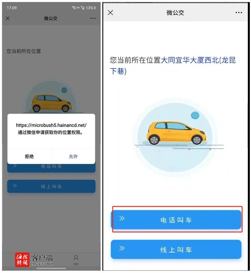 1.乘客选择电话叫车功能,系统会提醒“是否允许获取乘客位置”;