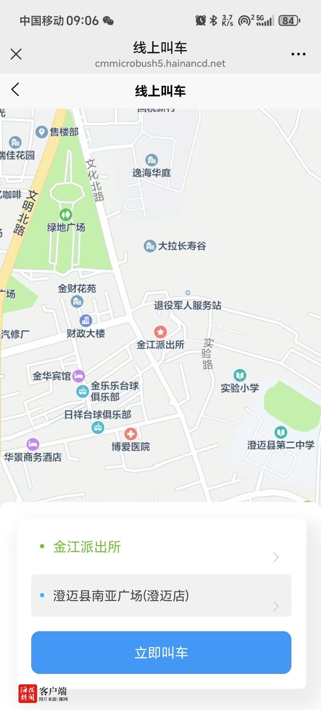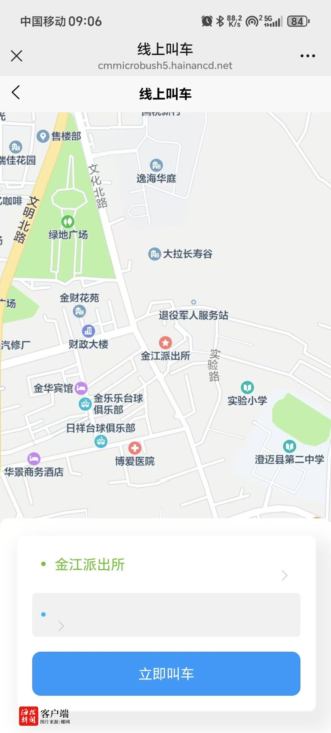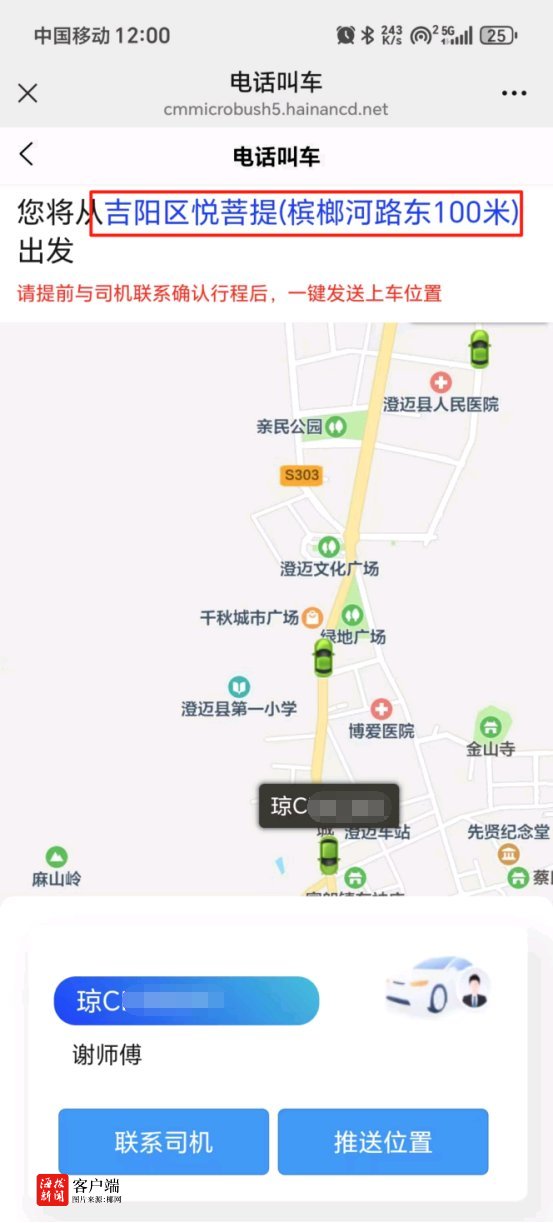 广大市民朋友可通过关注“澄迈交通”微信公众号,点击下方“预约出租”进入页面。
