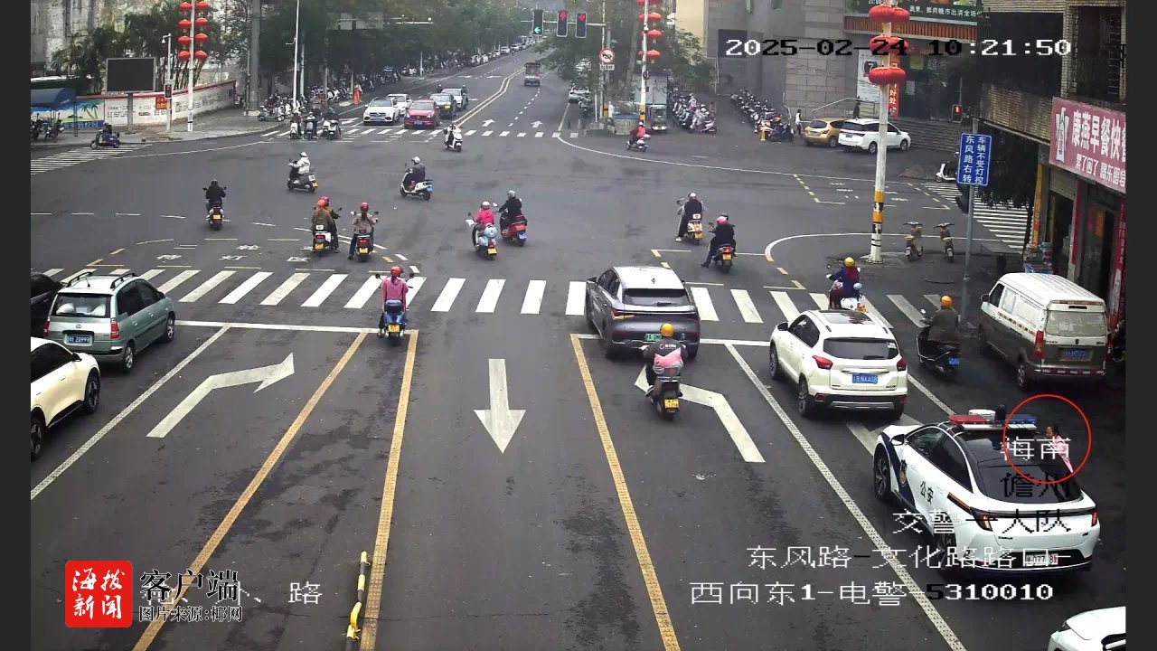 近日,儋州市区发生了一场与时间赛跑的紧急救援行动。一辆警车闪烁警灯、鸣响警笛,引领一辆私家车在车流中疾驰,只为将一名突发脑溢血的病人尽快送达医院。