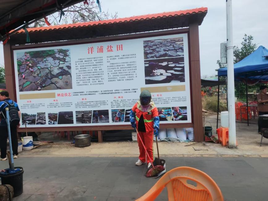 洋浦环卫工人对千年古盐田旅游景点开展精细化保洁工作,营造文明祥和的节日氛围,留得住客,看见绿色,感受非遗