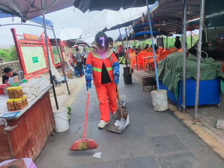 在千年古盐田景区,环卫工人正开展精细化保洁。清晨的街道上,红色的鞭炮纸屑铺满地面,工人们毫无怨言,反而视之为喜庆的象征。“扫干净了,才能留住游客,让他们玩得舒心。”一位环卫工人朴实地说。