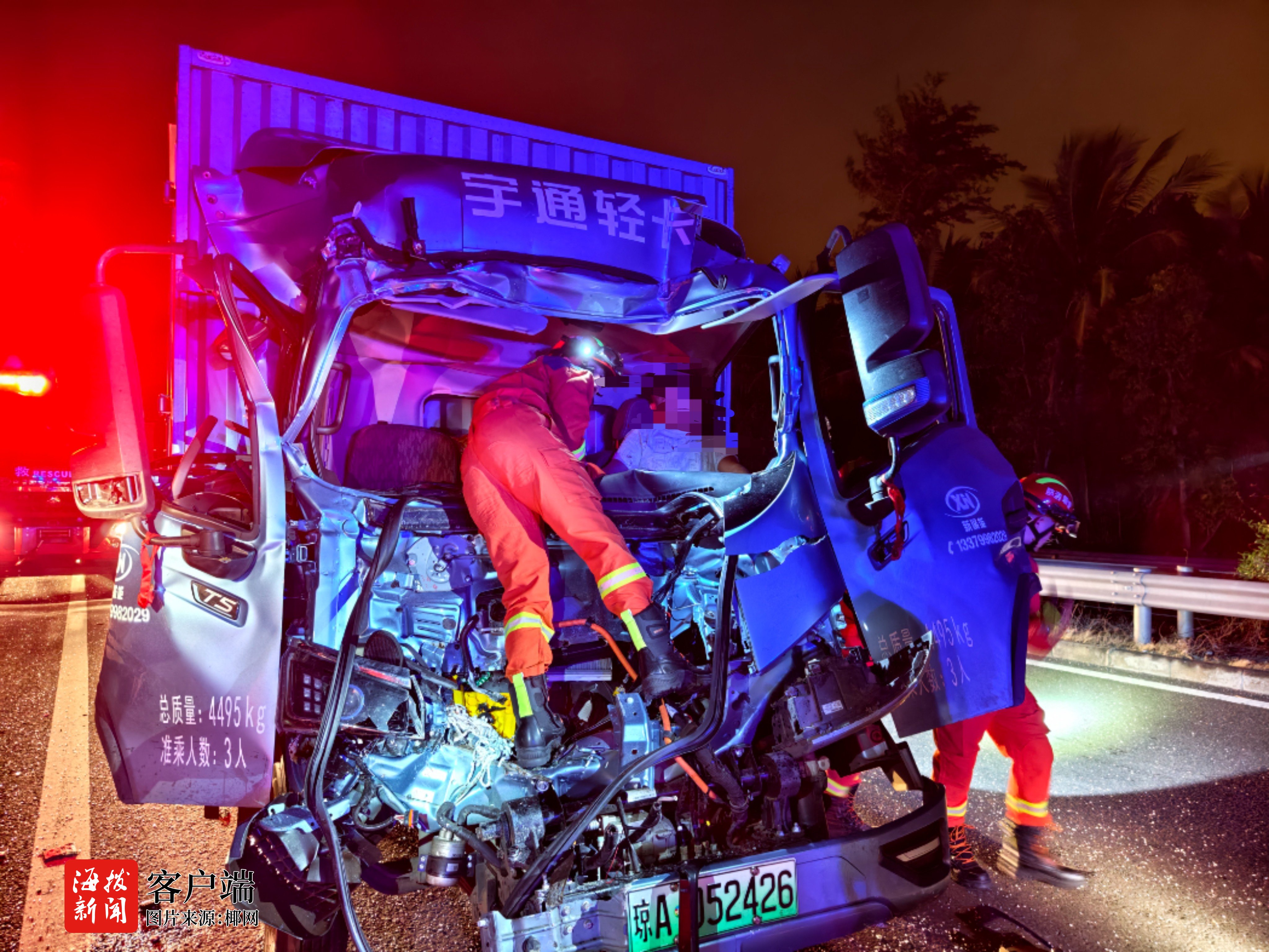 11月21日4时47分,东方市消防救援支队指挥中心接到110转警:位于东方市西线高速海口往东方方向423公里处发生两车追尾,有1人被困。