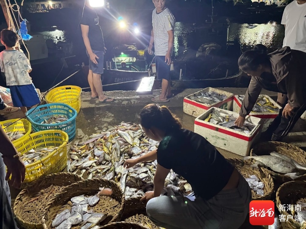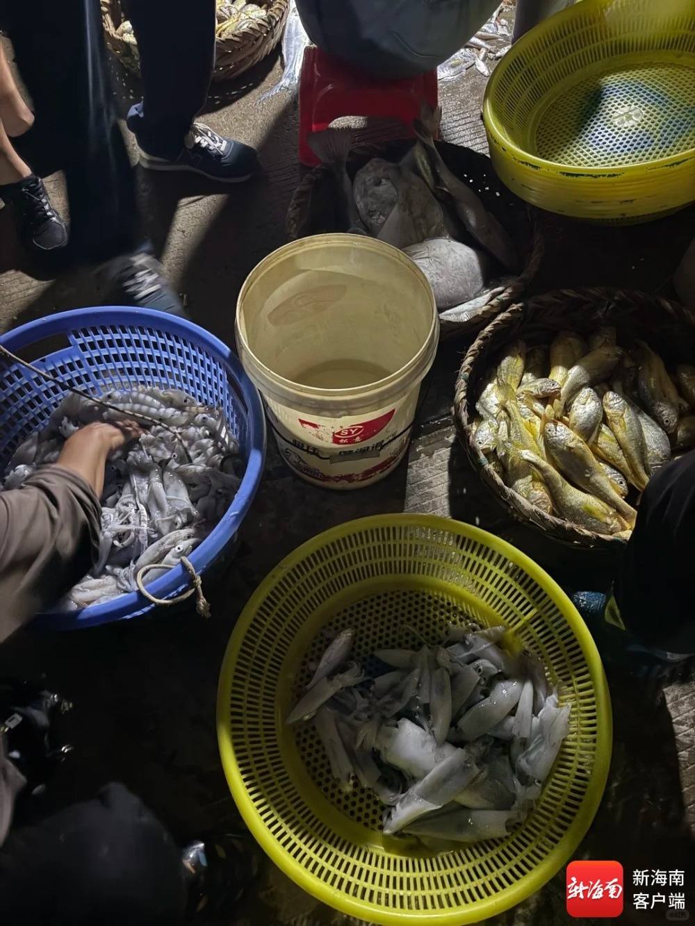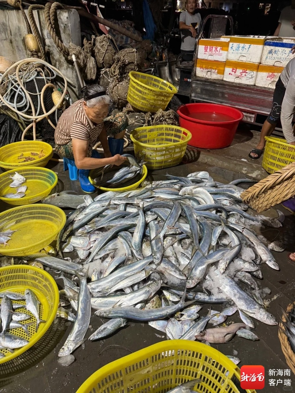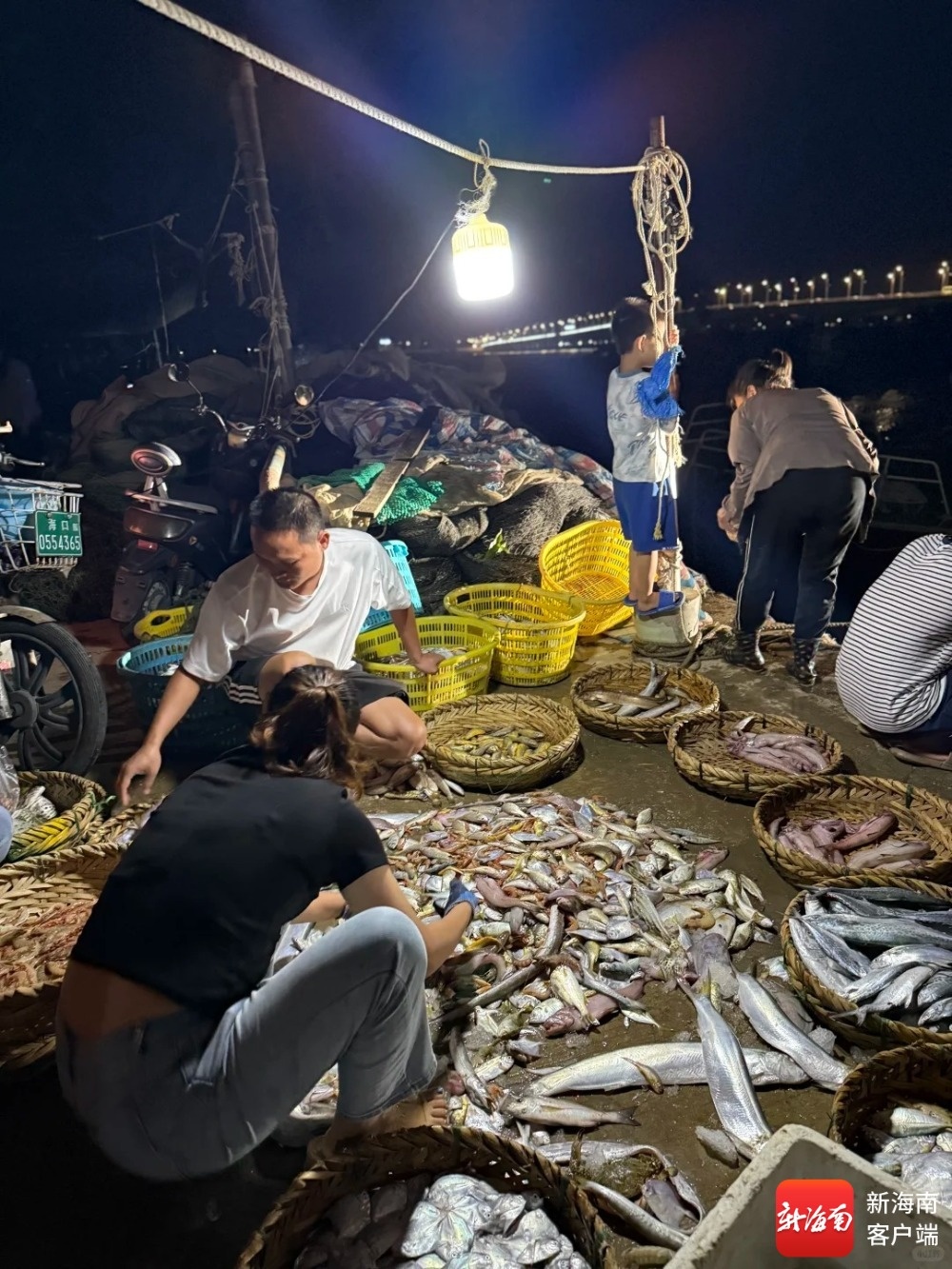 海口新埠岛三联社区渔港码头第一批渔获新鲜上岸。记者易帆摄