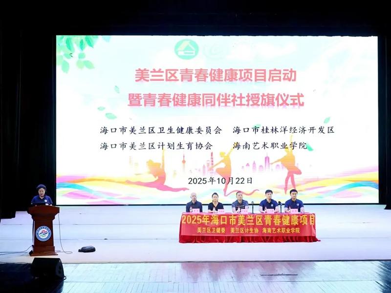 10月22日下午,由海口市美兰区卫健委、美兰区计划生育协会联合海南艺术职业学院共同举办的“美兰区青春健康项目启动仪式暨青春健康同伴社授旗仪式”在海南艺术职业学院实训剧场内隆重举行。本次活动吸引了该校16个班级的271名学生积极参与,标志着青春健康教育工作在校园内进入新阶段。