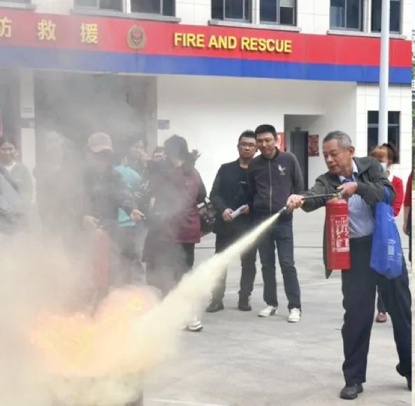 随后进行的实践演练环节,消防员现场演示了灭火器的使用步骤及存放注意事项,并组织参训人员逐一进行实操练习,确保每位“楼栋消防员”都能熟练掌握灭火技能。此外,现场还模拟了充满烟雾的火场环境,开展逃生演练。消防员提前讲解逃生要领,参训人员在指引下有序进行模拟疏散,进一步提升了在真实火场中的应变能力。