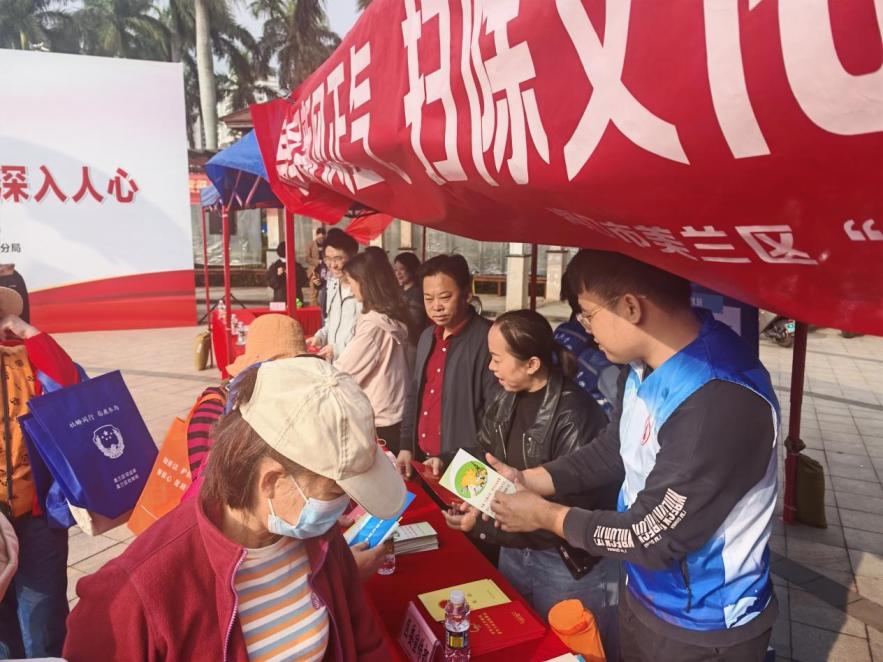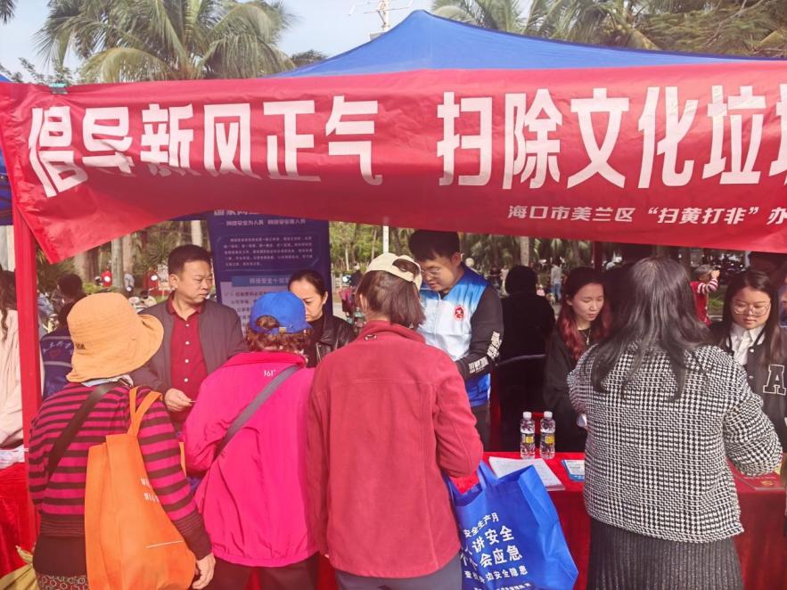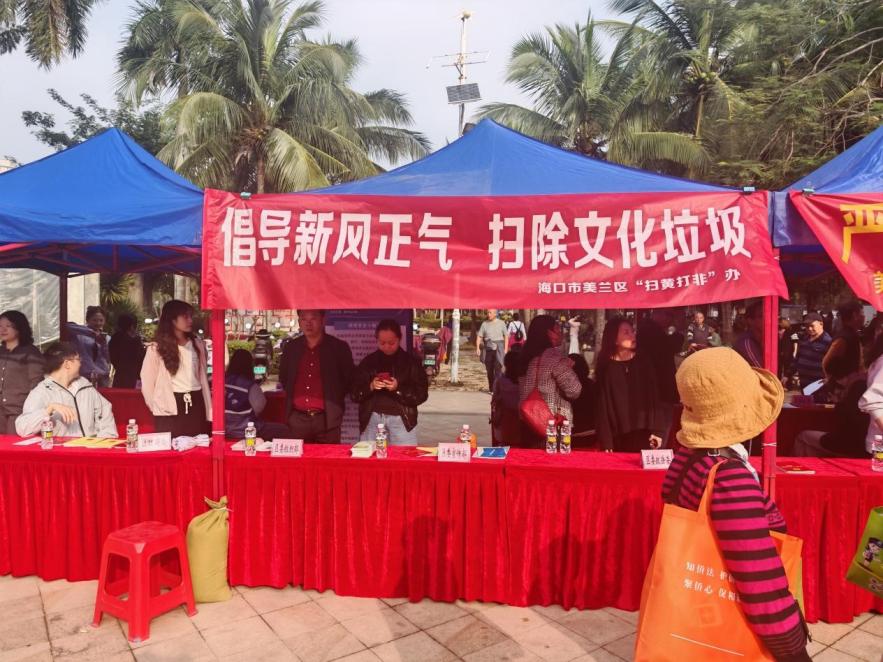 12月4日,正值第十二届“国家宪法日”暨第八个宪法宣传周,海口市美兰区委宣传部在群上广场组织开展“扫黄打非”主题宣传活动。活动以“倡导新风正气,扫除文化垃圾”为主题,深入推动法治理念与健康文明风尚有机结合,为辖区居民营造学法、守法、用法的良好氛围。