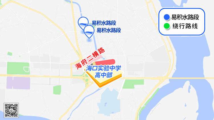 1.雨天以下路段易出现短时积水:滨海大道秀英时代广场路段