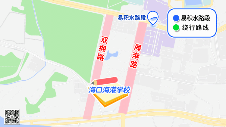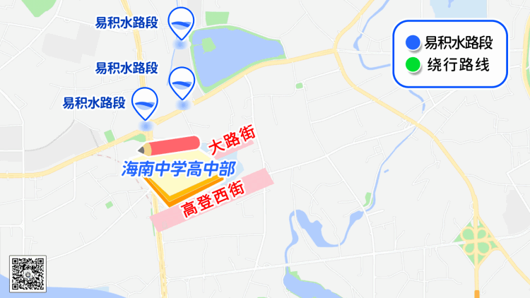 绕行路线:送考车辆可绕行金滩路、丘海一横路、海盛路-海秀西路往返考点,避免雨天通行受阻。