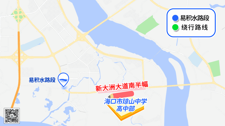 绕行路线:送考车辆可绕行丘海大道、秀英大道、金集路、富康路往返考点,避免雨天通行受阻。