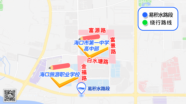 1.雨天以下路段易出现短时积水:金福路与椰海大道交叉口